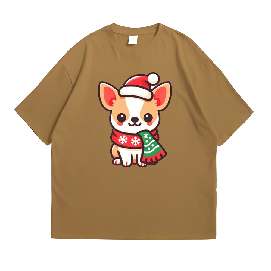 We use newest DTG Technology to print on to Charming Chihuahua_ Christmas Couture Pose Front Sand.
