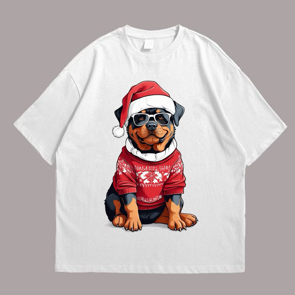 We use newest DTG Technology to print on to Dog Merry Cristmas Front White.