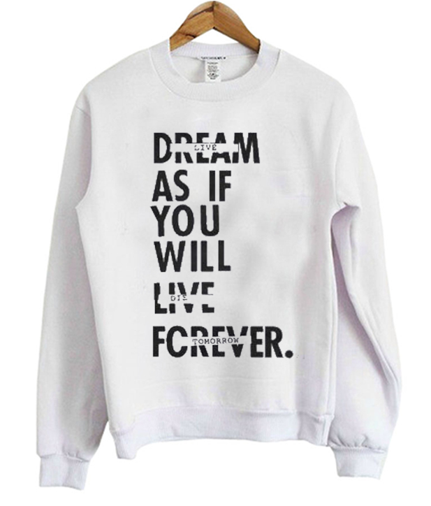 Have a questions about Dream As If You Will Live Forever Sweatshirt ? Please feel free to contact me, thank you for visiting!
