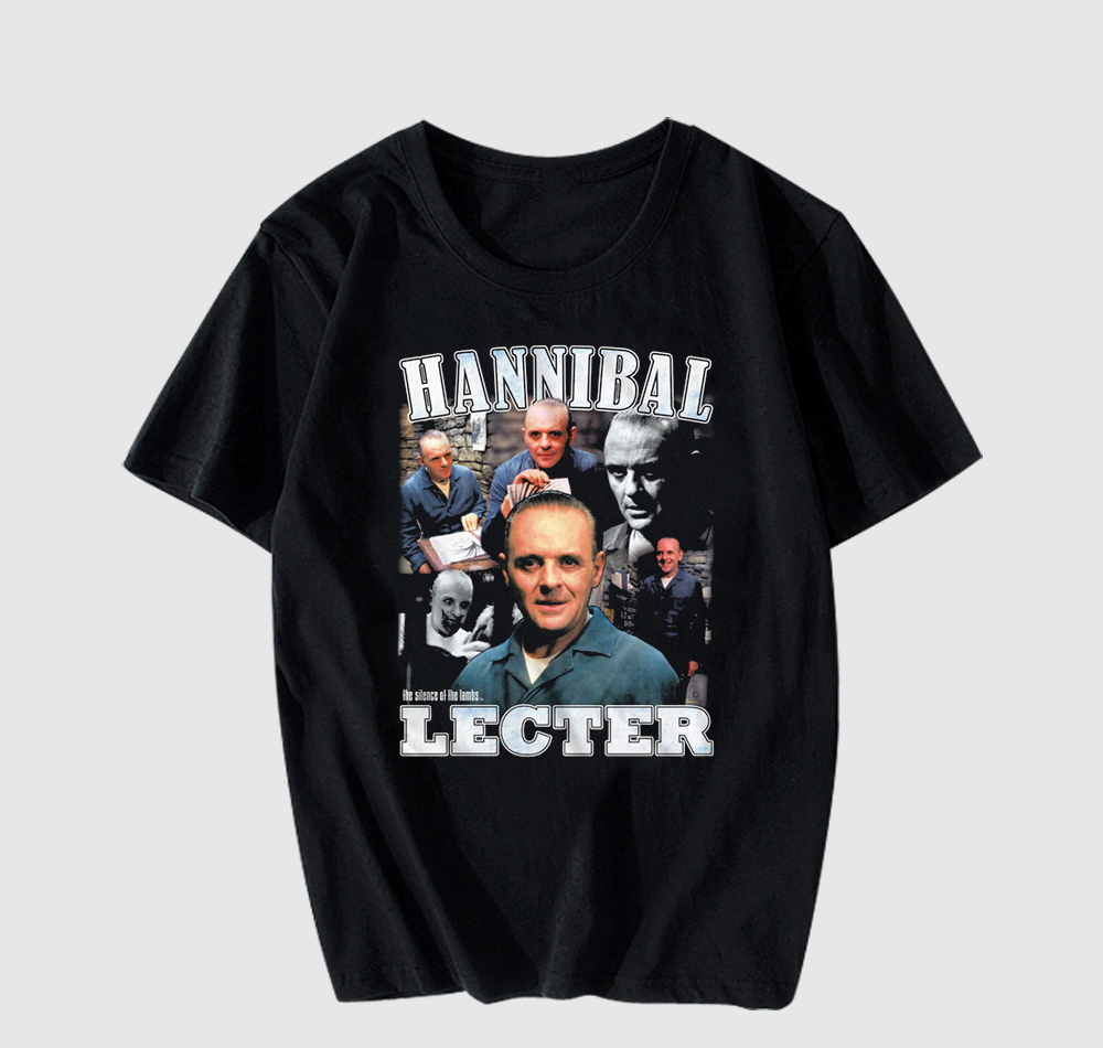 We use newest DTG Technology to print on to Hannibal Lecter Collage Silence Of The Lambs T-Shirt.