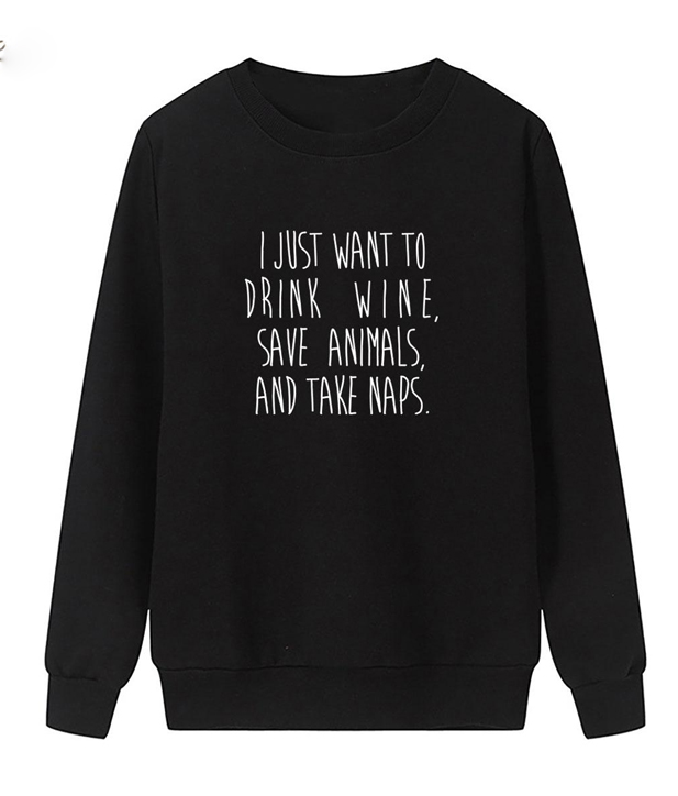 Have a questions about I Just Want To Drink Wine Save Animals And Take Naps Sweatshirt? Please feel free to contact me, thank you for visiting!