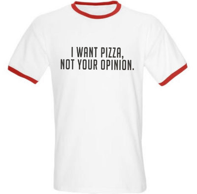this item is linked as : I want pizza not your opinion Ringer T-shirt