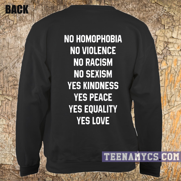 Have questions about No Homophobia, Violence, Racism Sweatshirt? Please feel free to contact me, thank you for visiting!