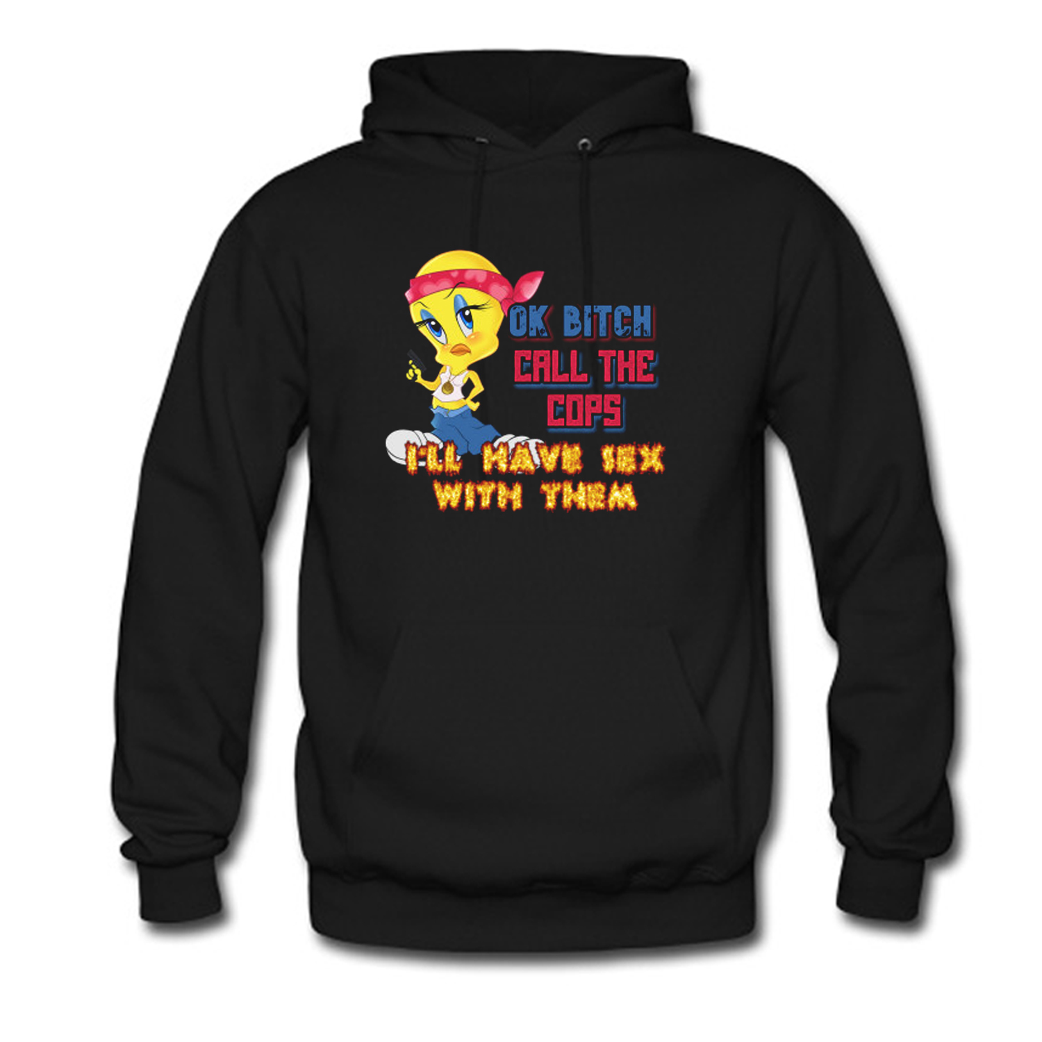 We use newest DTG Technology to print on to Ok Bitch Call The Cops Tweety Hoodie.