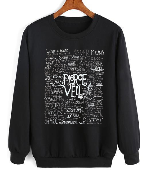 We use DTG Technology to print on to Pierce The Veil lyrics Sweatshirt.