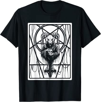 Buy Satanic Dark Art Evil with Skull 666 Pentagram Baphomet T-Shirt