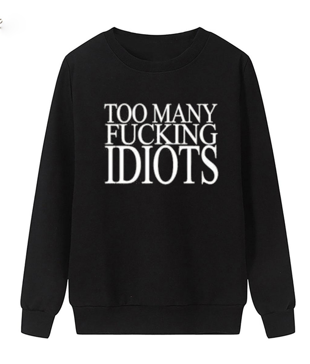 Have a questions about Too Many Fucking Idiots Sweatshirt? Please feel free to contact me, thank you for visiting!